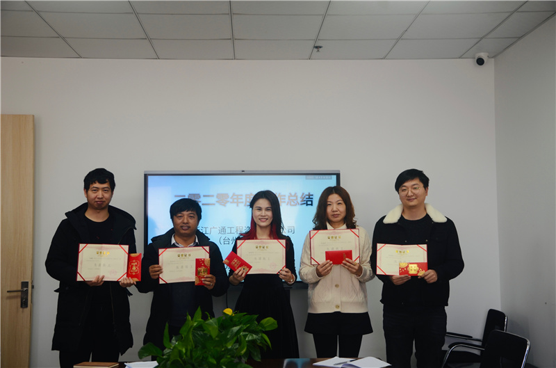 接下來,公司對章海玲、邵增躍、金巍、顏鶯鶯、任亦誌5位先進員工進行了表彰,並頒發了證書和獎金。