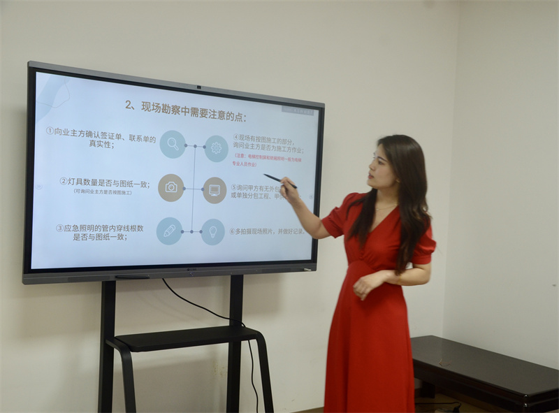 2021年8月9日(ri),浙(zhe)江(jiang)廣(guang)通(tong)工(gong)程(cheng)谘(zi)詢(xun)有(you)限(xian)公(gong)司(si)台(tai)州(zhou)分(fen)公(gong)司(si)內(nei)部(bu)培(pei)訓(xun)會(hui)在(zai)大(da)會(hui)議(yi)室(shi)舉(ju)行(xing)。本(ben)期(qi)培(pei)訓(xun)的(de)主(zhu)講(jiang)人(ren)是(shi)造(zao)價(jia)部(bu)安(an)裝(zhuang)工(gong)程(cheng)師(shi)顏(yan)鶯(ying)鶯(ying)同(tong)誌(zhi),她(ta)介(jie)紹(shao)了(le)安(an)裝(zhuang)項(xiang)目(mu)審(shen)計(ji)流(liu)程(cheng),著(zhe)重(zhong)講(jiang)解(jie)了(le)現(xian)場(chang)勘(kan)查(zha)的(de)目(mu)的(de)、現場勘查的準備、現場勘查的工作方法等。