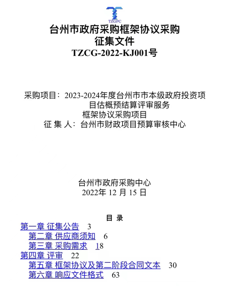 【轉發】2023-2024年度台州市本級政府投資項目估概預結算評審服務框架協議采購項目
