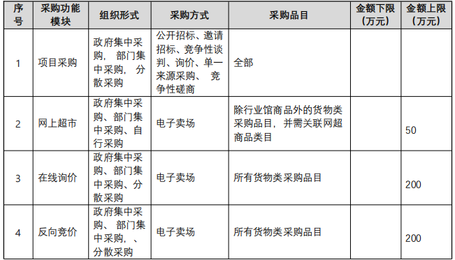 如一個采購計劃匹配多個采購功能模塊的,采購人可自行選擇在其中一個模塊實施采購。