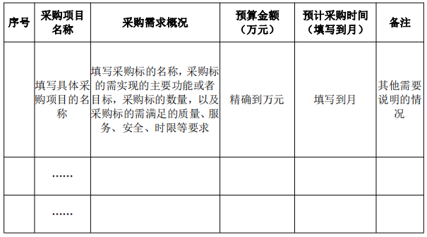 為便於供應商及時了解政府采購信息,根據《財政部關於開展政府采購意向公開工作的通知》(財庫〔2020〕10號)等有關規定,現將(單位名稱) 年 (至) 月采購意向公開如下: