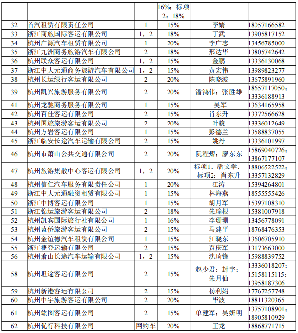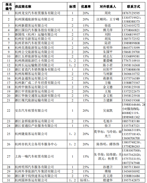 2019-2021年度浙江省本級、杭州市本級公務出行用車服務采購項目入圍機構聯係方式