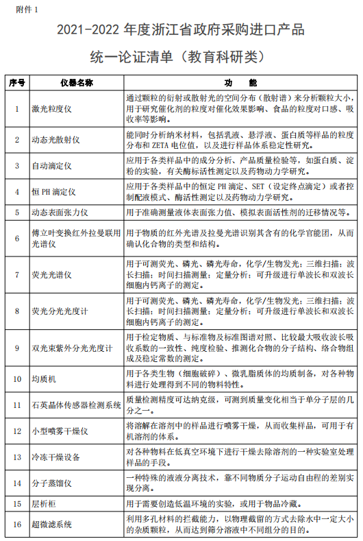 1.2021-2022 年度浙江省政府采購進口產品統一論證清單(教育科研類)