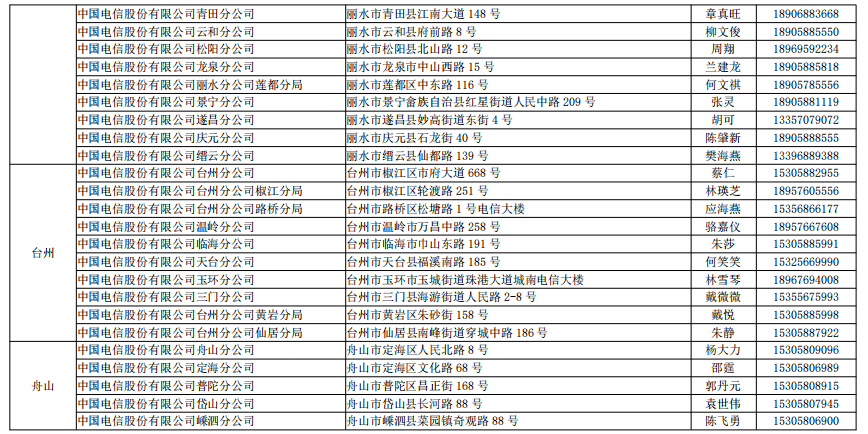 (二)中國電信股份有限公司浙江分公司
