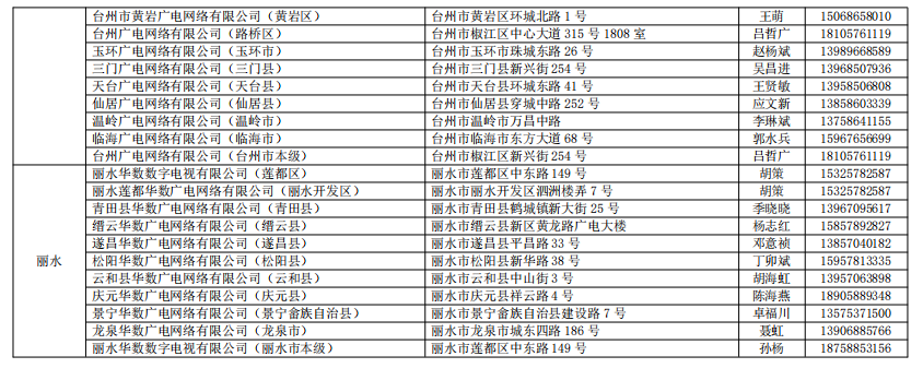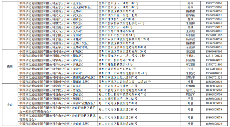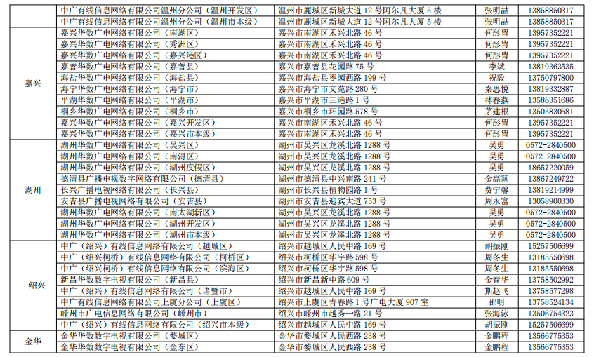 中國電信股份有限公司浙江分公司、中國移動通信集團浙江有限公司、浙江華數廣電網絡股份有限公司、中國聯合網絡通信有限公司浙江省分公司等 4 家單 位。
