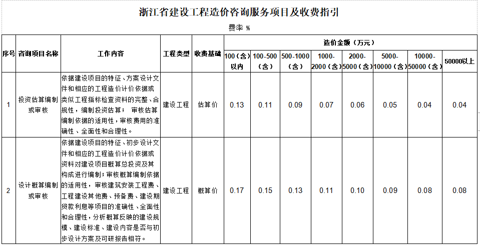 附件:浙江省建設工程造價谘詢服務項目及收費指引
