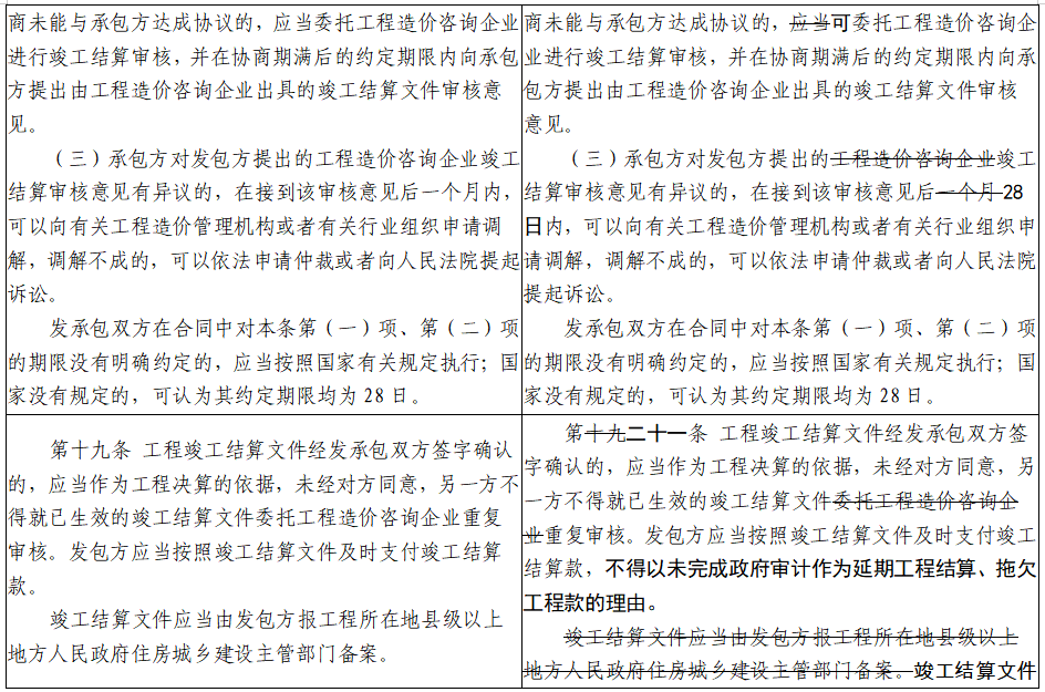 一是增加關於工期的條款。二是刪除原辦法中有關工程造價鑒定內容。三是規範文字表述。將“住房城鄉建設主管部門”統一修改為“住房和城鄉建設主管部門”;將“縣級