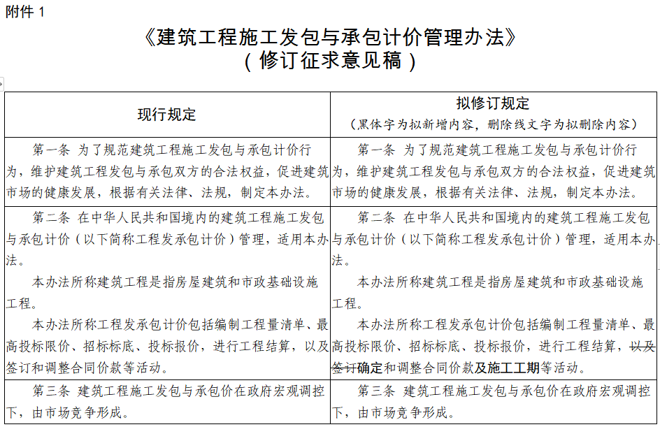 附件:1.《建築工程施工發包與承包計價管理辦法》(修訂征求意見稿)