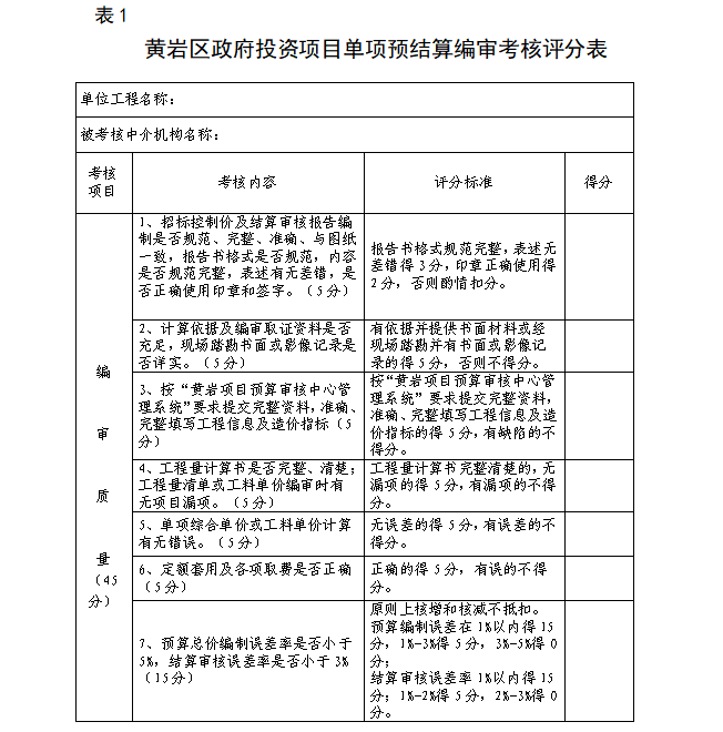 附:1.黃岩區政府投資項目單項預結算編審考核評分表