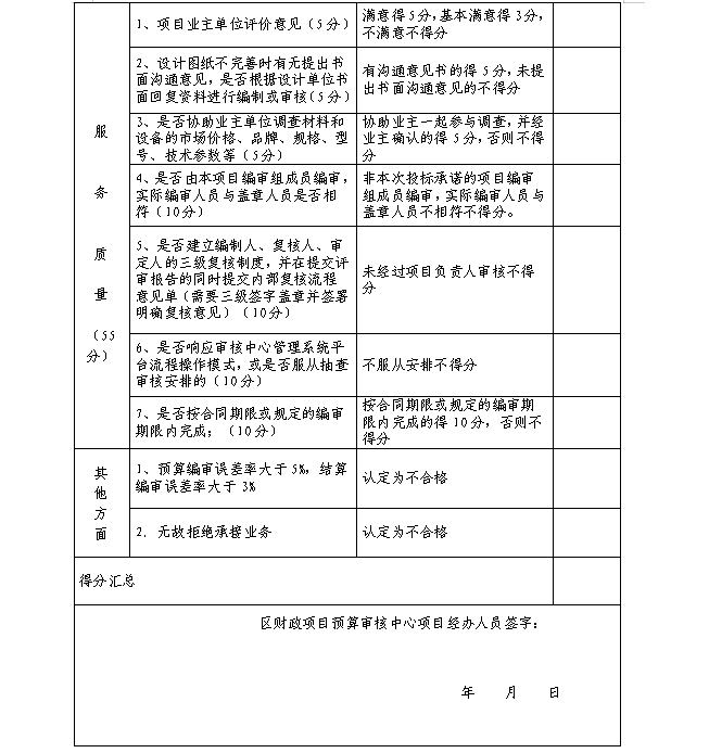 單項業務考核由財政項目預算審核中心根據單個項目預結算編審情況進行評定。