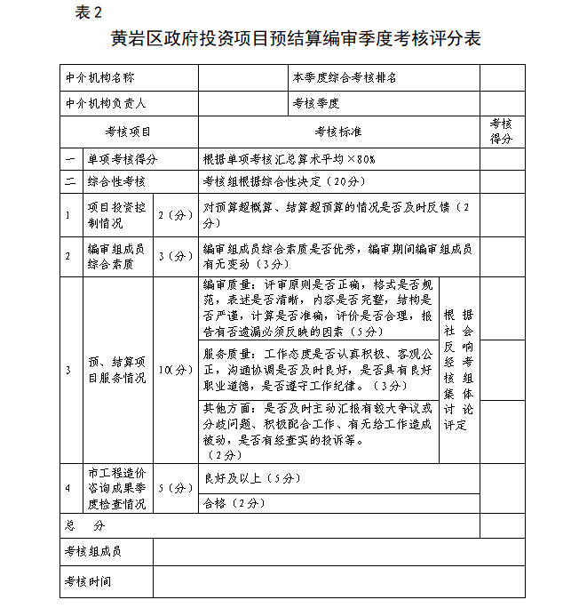 2.黃岩區政府投資項目預結算編審季度考核評分表
